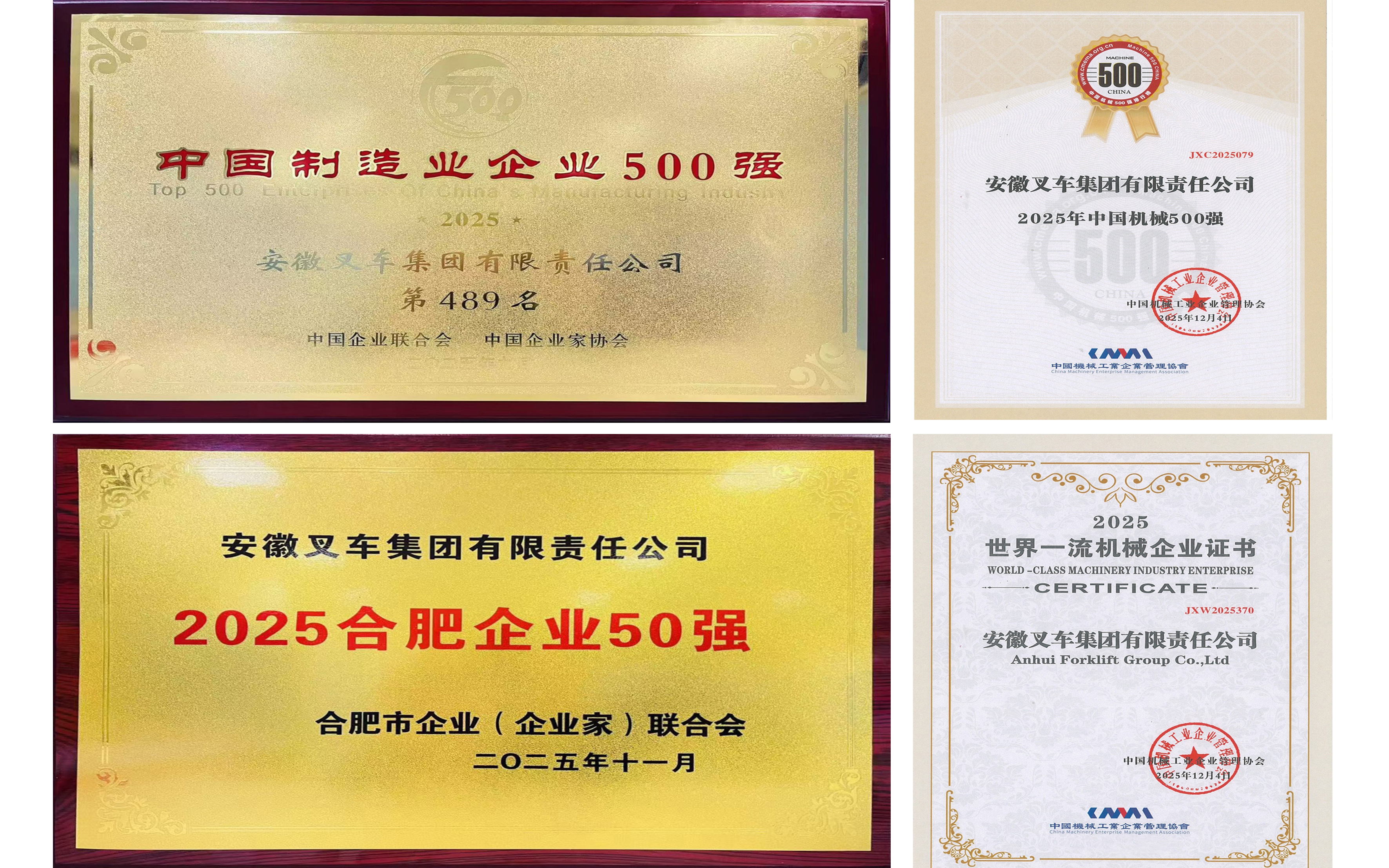 “十四五”發展看合力丨五載奮楫創佳績 榮譽登高啟新程——安徽叉車集團榮登多項榮譽榜單